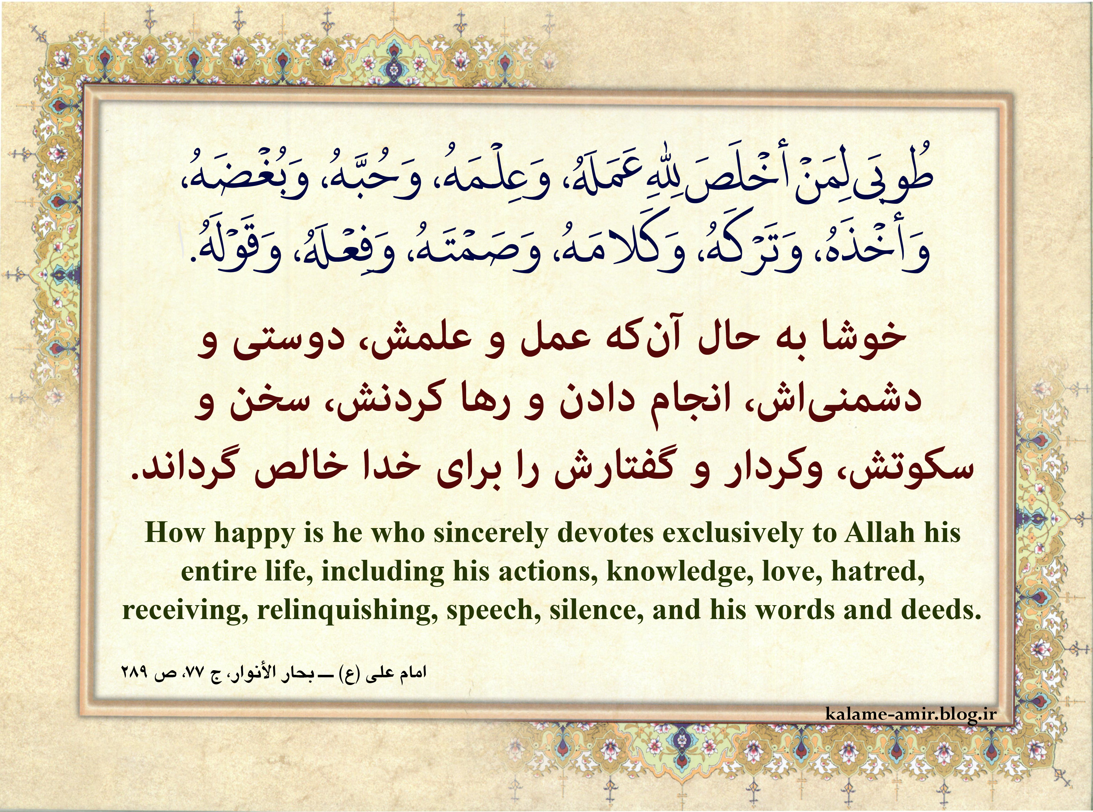 امام علی (ع) ــ بحار الأنوار، ج 77، ص 289